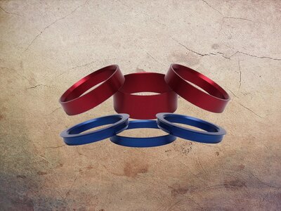 Zentrierringe in verschiedenen Durchmessern aus Aluminium eloxiert speziell für unsere Leichtmetallfelgen.